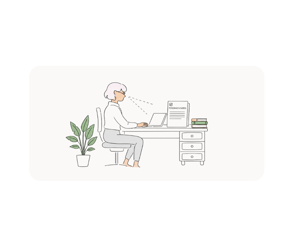 In the following, we have prepared an example of what you can write in your employee handbook and some of the things that are relevant to include in your employee handbook so that it doesn't become a doorstop or gather dust on the top shelf - but you also need to do some thinking yourself. That's why we haven't filled out the employee handbook like many other templates.